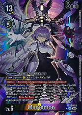 [When Digivolving] You may play 1 level 5 or lower yellow or purple -card from your hand or trash without paying the cost. Then, if this Digimon's stack has 2 or more same-level cards, trash the top cards of both players' security stacks so that they have 3 cards left.