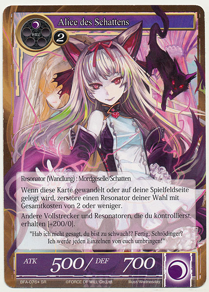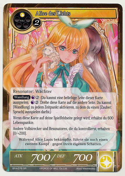 Wenn diese Karte gewandelt oder auf das Spielfeld gelegt wird⇒Zerstöre einen Resonator deiner Wahl mit Gesamtkosten von 2 oder weniger.