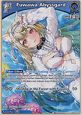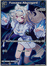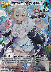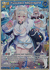 Arts 2:[BRN] Wanna eat together? (100) [P+50] [Center Position Only]If your Oshi holomem is "FUWAMOCO", you may reattach 1 cheer from this holomem to your "Mococo Abyssgard":Deal 50 special damage to your opponent's center holomem.