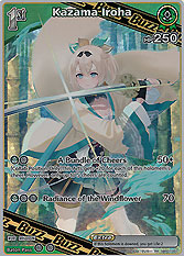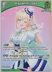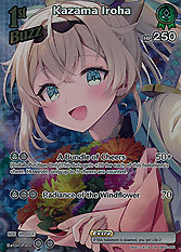 Arts 1:[GNNN] Kazama Attacc (100+) [W+50] If 2 or more non-green cheers are attached to this holomem, this Arts gets +50.