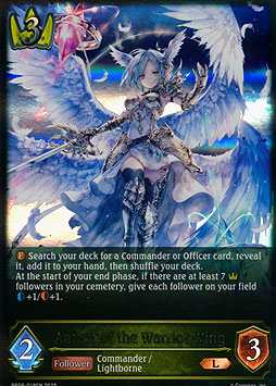 At the start of your end phase, if there are 7 or more Royal follower in your graveyard, give +1/+1 to all followers in your field.