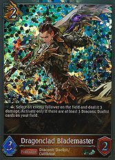 [Act] [Engage]: Select an enemy follower on the field and deal it 3 damage. Activate only if there are at least 3 Draconic Duelist cards on your field.