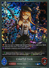 Fanfare: You may put a "Naterran Great Tree" into the field or EX Area. Add 1 to your leader's health. Last Words: [Discard a card]: Draw a card.